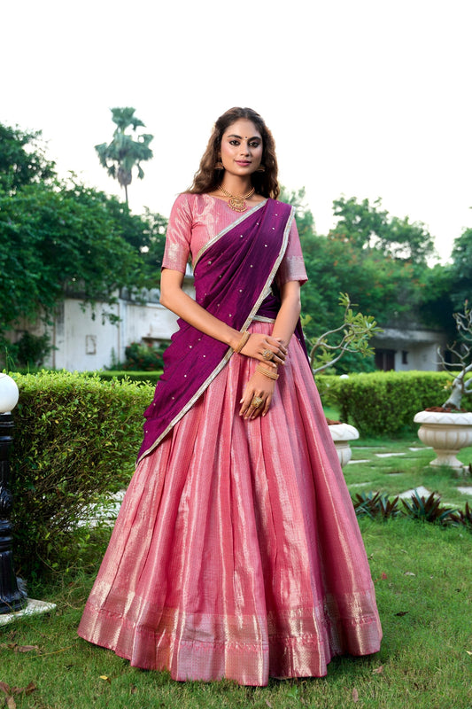 Latest Kanchipuram Zari Weaving Work Lehenga Set (Stitched)