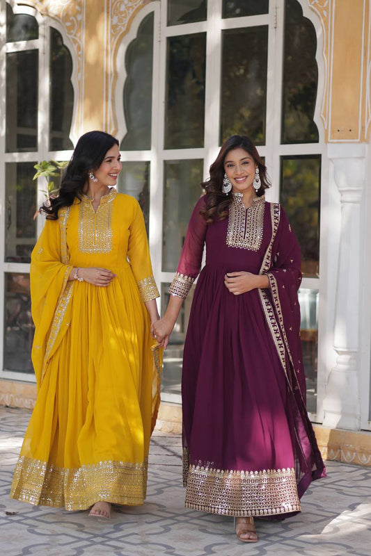 New Sequence & Embroidery Work Georgette Gown with Dupatta